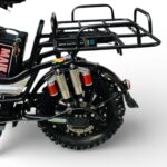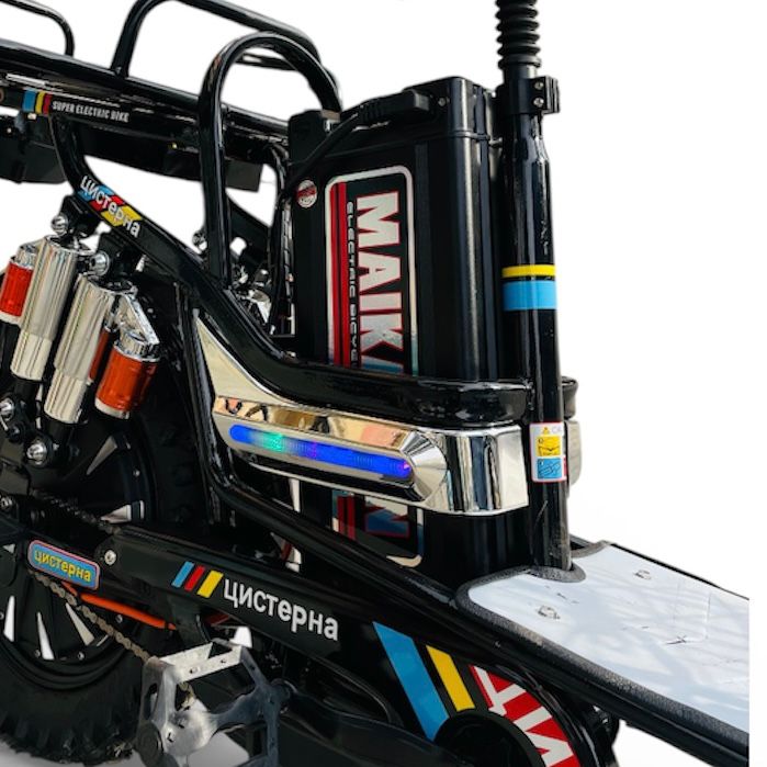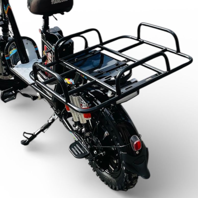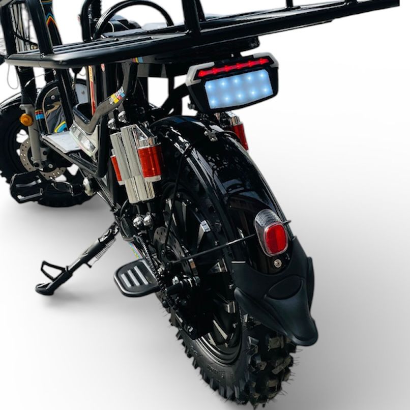 Təkər ölçüsü 80/100×12. Disk əyləclə hidravlik əyləc sistemi, ön amartizator, oturacaq amartizatoru, arxa amartizator, ön səbət və arxa kuryerlər üçün geniş baqaj, ön fənər, arxa fənər, əyləci basdıqda işıqlanma, dönmə siqnalı, yan güzgülər, telefon tutan, telefon şarj edən, siqnal , əl və ayaq qaz sistemi, siqnalizasiya sistemi, 3 sürətlənmə sistemi, max sürət 40-45 km, məsafə 40 km . Açar və NFC kartla xodlanma sistemi. Batareya şarj müddəti 5-6 saat. Batareyanı ayırıb və ya üzərində şarj etmə.